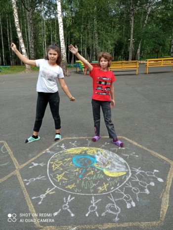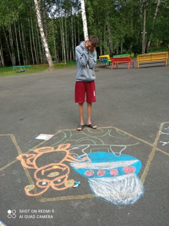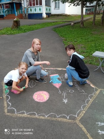 В один прекрасный летний день в «Монтажнике» был проведен асфальтный вернисаж «Космические фантазии» для наших юных художников.