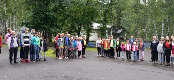 Под звуки гимна Российской Федерации открылась торжественная линейка, во время которой на флагштоке самыми активными и ответственными воспитанниками был поднят российский флаг.