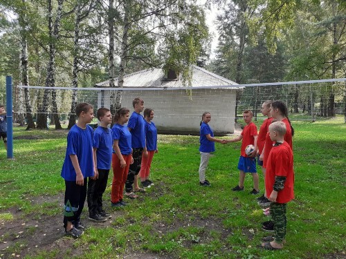 В рамках реализации спортивно-оздоровительного направления программы летнего отдыха «Я – КуZбассовец!» состоялся дружеский матч по пионерболу между спортивными командами отряда № 3 - «Искра» и отряда № 4 - «Ветер».