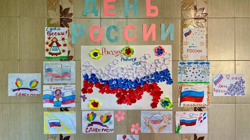 Посредством творчества ребята в своих рисунках и аппликациях выразили любовь и уважение к своей Родине. Готовые детские работы были размещены на выставке, посвященной Дню России, в фойе учреждения.