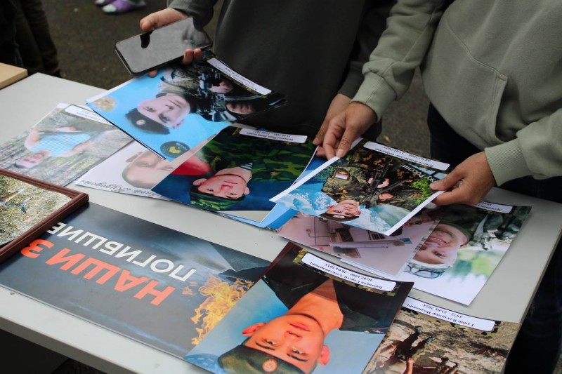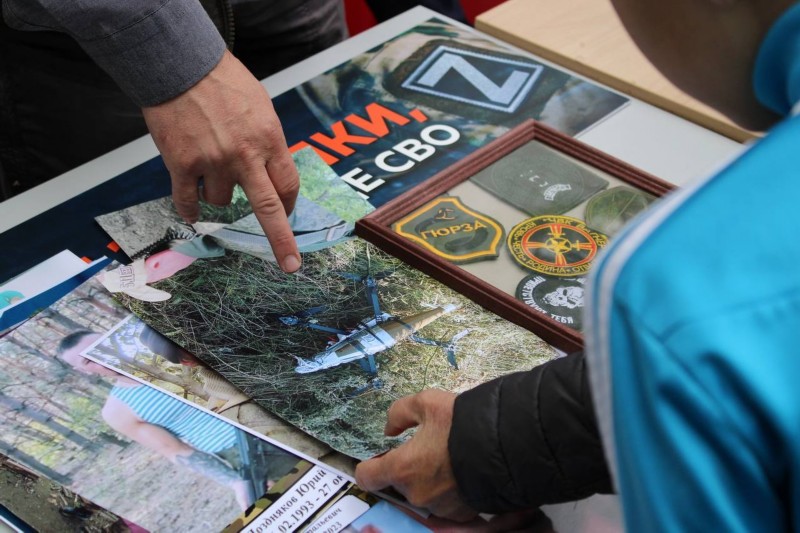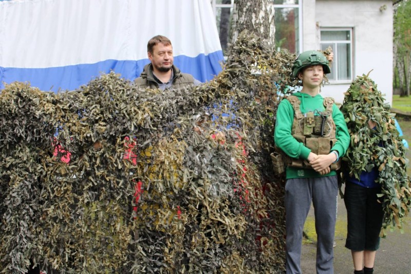 Огромный интерес детей вызвали экспонаты мобильной выставки «Кузбасс - Родина героев». Все желающие смогли примерить бронежилет и защитную каску, подержать в руках макеты оружия и гранат, поближе разглядеть настоящий военный дрон-камикадзе, укрыться под маскировочной сеткой и осуществить эвакуацию раннего.
