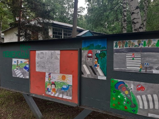 В загородном оздоровительном лагере «Монтажник» была организована выставка детских рисунков на тему по безопасности дорожного движения: «Мы - пешеходы», основная задача которой привить детям необходимые навыки безопасного поведения на дороге. Для выставки наши воспитанники подготовили яркие и красочные рисунки.