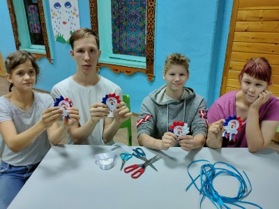 Свои двери распахнула мастерская «Волшебная ленточка», где ребята с удовольствием делали значки - символы России.
