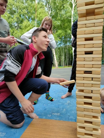 В лагере «Монтажник» состоялся турнир по напольной игре «Jenga», в котором приняли участие все желающие. Эта игра направлена на развитие ловкости рук, смекалки и чувства равновесия.