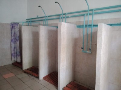 Уличные умывальники в количестве 2 штук, раздельные душевые комнаты расположены в отдельно стоящем здании (по 6 кабинок, из них 1 гигиеническая кабинка для девочек), надворные туалеты в количестве 3 штук.