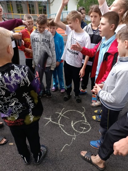 Ребята отвечали на вопросы экологической викторины и угадывали животных по описанию хвоста, разгадывали загадки и расшифровывали ребусы. С большим интересом команды приняли участие в игре «Изобрази и угадай животное», где без слов и с закрытыми глазами нужно нарисовать мелом на асфальте любое животное, а другие участники команды должны угадать кто это.