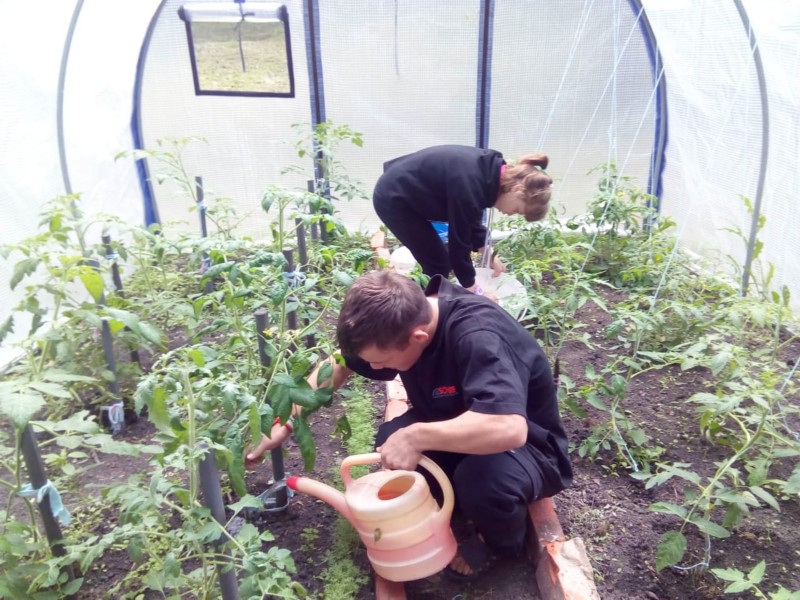 В этом году в наших теплицах были посажены помидоры, огурцы, перцы, листовой салат и укроп. В течение всего лета дети с большой радостью обрабатывали землю, ухаживали за культурами, рыхлили, поливали и пропалывали грядки. Полученный урожай использовали на кулинарных мастер-классах, где воспитанники учились оттачивать навыки консервирования овощей и приготовления вкусных блюд.