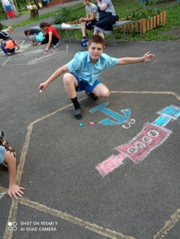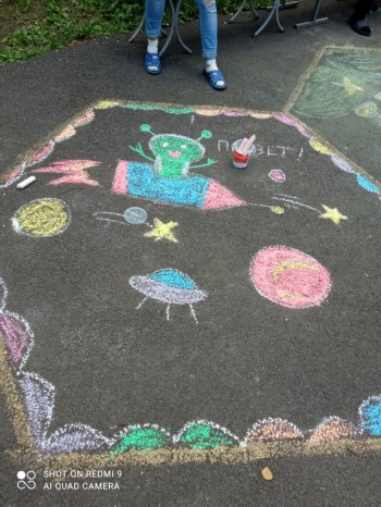 В один прекрасный летний день в «Монтажнике» был проведен асфальтный вернисаж «Космические фантазии» для наших юных художников.