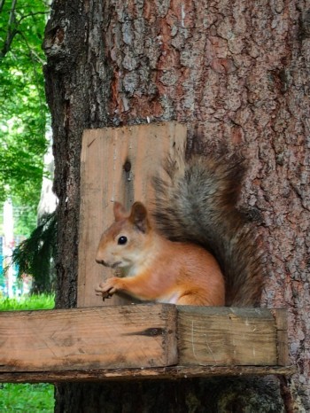 Уже не первый год наш лагерь посещают ярко-рыжие лесные красавицы – белочки. Они с удовольствием угощаются разными лакомствами: орешками, семечками и яблочками. Ребята с теплом и заботой относят к лесным красавицам, они своевременно чистят кормушки и пополняют их запасы.