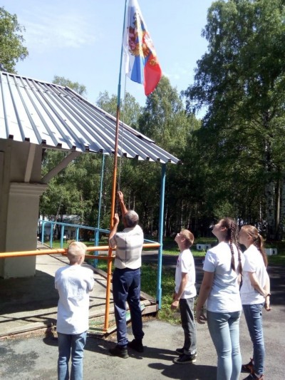 12 июня под звуки гимна Российской Федерации открылась торжественная линейка, во время которой на флагштоке был поднят российский флаг.